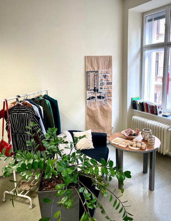 Nadeszła godzina „0”. My, organizatorki byłyśmy na miejscu już o 8.30. Trzeba było błyskawicznie przemeblować pomieszczenia, udekorować ściany, rozłożyć wieszak i zapełnić go ubraniami, przygotować półkę z książkami do wymiany oraz wykonać wiele niezaplanowanych wcześniej czynności. Pierwsi goście przybyli o godz. 10.30. Wydarzenie rozpoczęło się punktualnie i miało następujący przebieg: oficjalne powitałam przybyłych gości i krótko przedstawiłam działalność Kongresu Polskich Kobiet w Austrii (były to informacje niezbędne, ponieważ wiele osób spotkało się z nami po raz pierwszy).